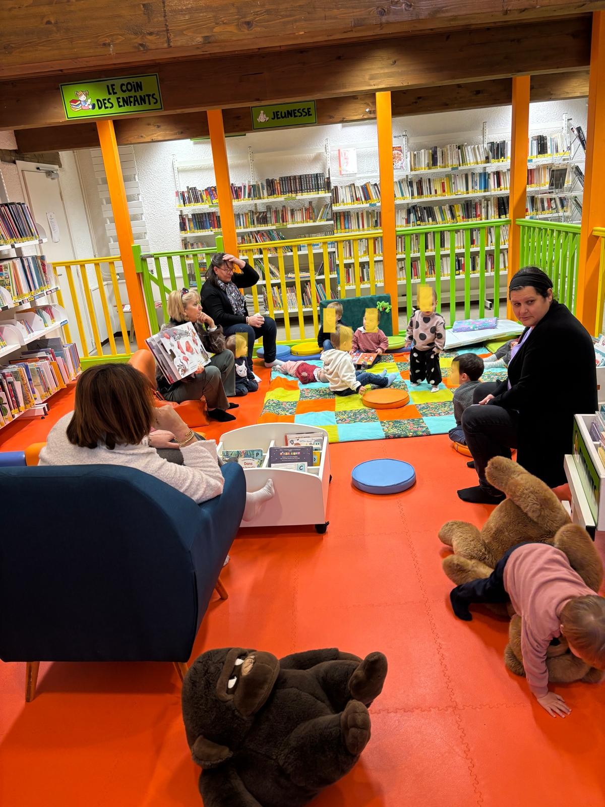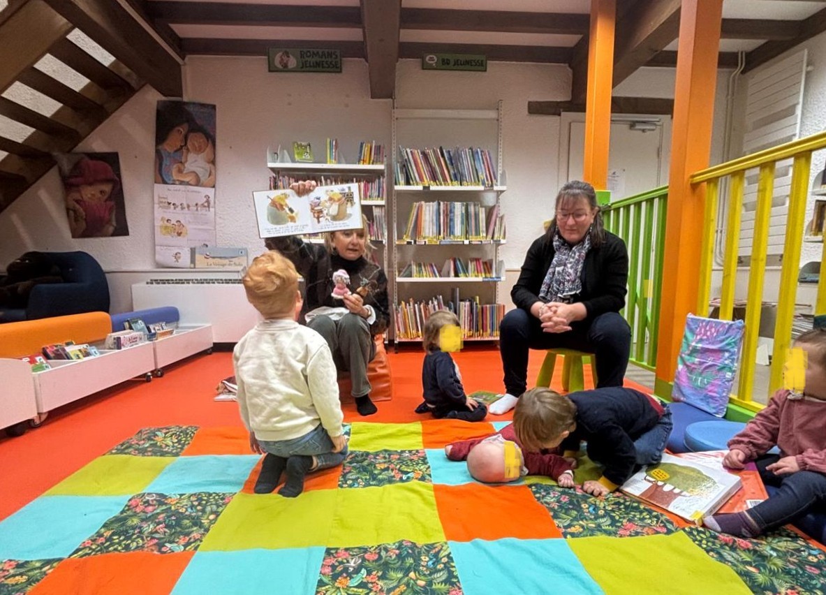 L’espace enfance de la bibliothèque et les différents supports réalisés par les couturières du groupe »Coud-ci, coud-ça » (tapis à histoires et personnages) permettent de passer de bons moments autour des livres. Un choix et une réalisation de la municipalité positifs !